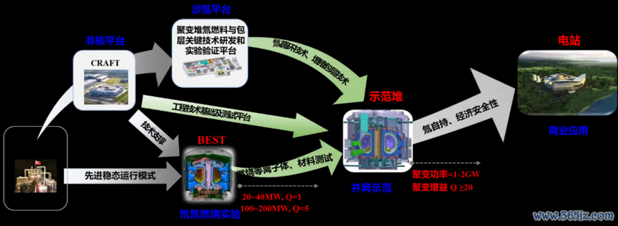 BEST的中枢职责是竣事三大宗旨,组成从物理探索到工程考证的竣工闭环:在等离子体物理领域,探索高性能氘氚(D-T)有蓄意,竣事科学盈亏均衡(Q≥1),相关全钨环境下的拘谨问题,开辟接近撤消等离子体条款的先进运行模式(Q≈5);在聚变手艺与工程领域,考证高场超导磁体、高热负荷钨偏滤器等重要手艺,演示集成式氚燃料轮回,为中国聚变工程示范堆(CFEDR)提供顺利手艺撑抓;在聚变核安全领域,测试氚衡算、除氚系统和拘谨樊篱性能,为聚变堆安全许可蕴蓄数据。